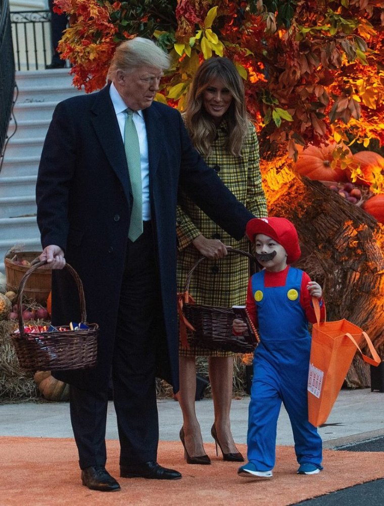 美国总统夫妇白宫过万圣节 特朗普手持“蛇杖”亲自发糖